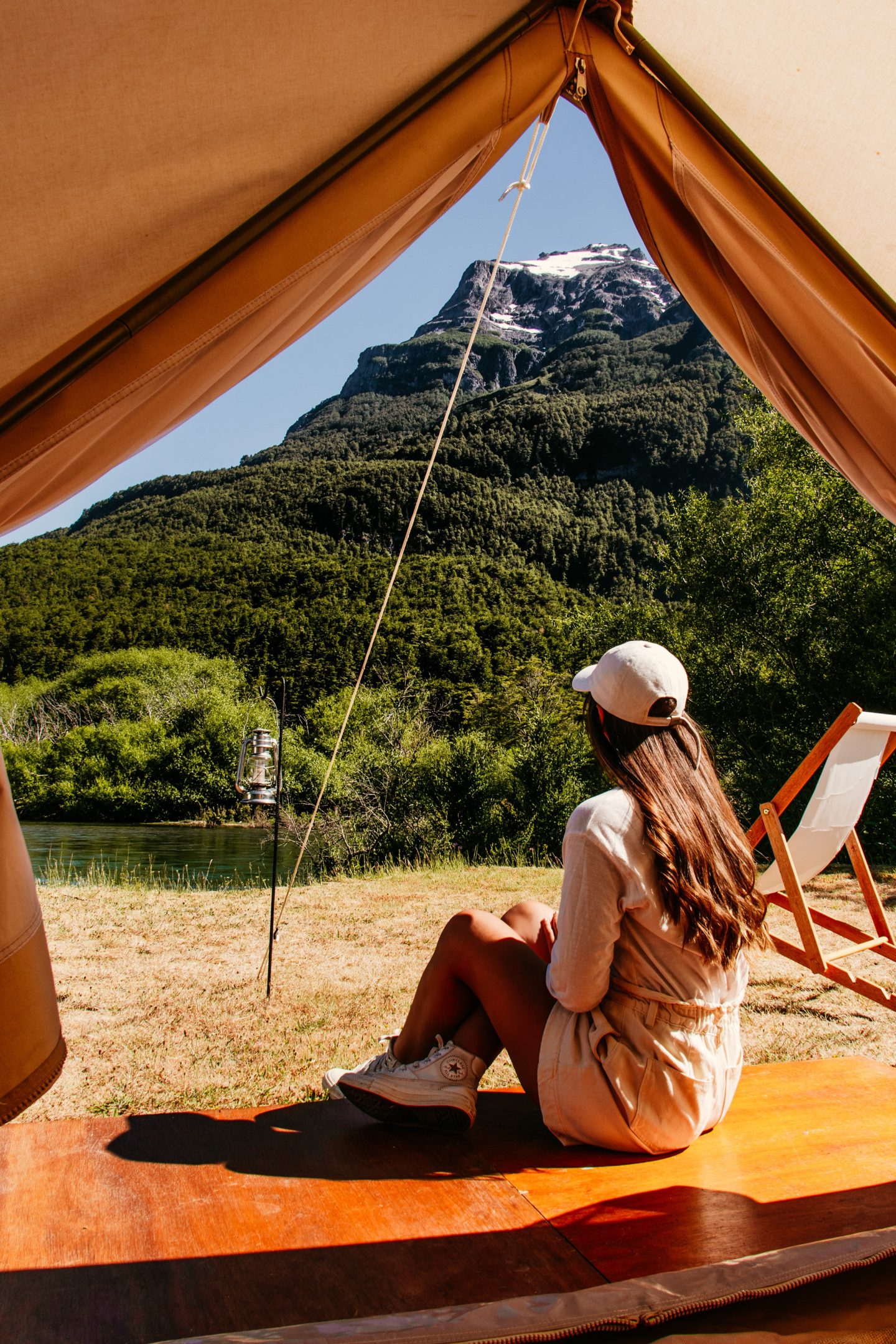 Despertar con la calma y el sonido del Río Manso en una mañana de verano, mientras la brisa fresca me acaricia y el increíble paisaje me mima el alma.